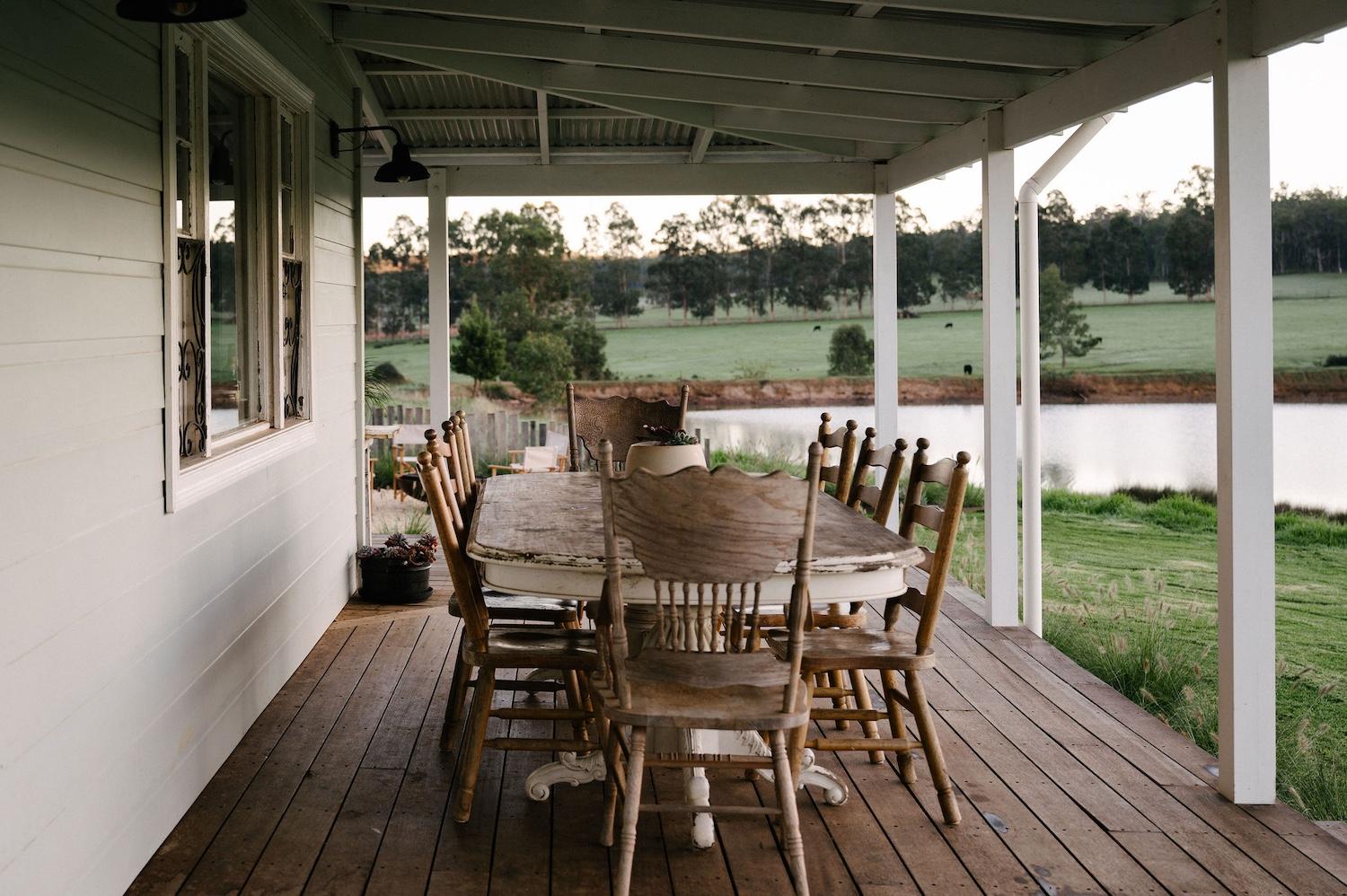 Andrew and Abbey: The Farmhouse is nestled in the fruit-growing region of Western Australia’s Southwest on the outskirts of a small town called Kirup. It’s a region known for quality produce and an authentic country lifestyle. Driving from Perth, the busy traffic and suburban developments fade away to lush pastures, towering forests, and fruit-filled orchards.
