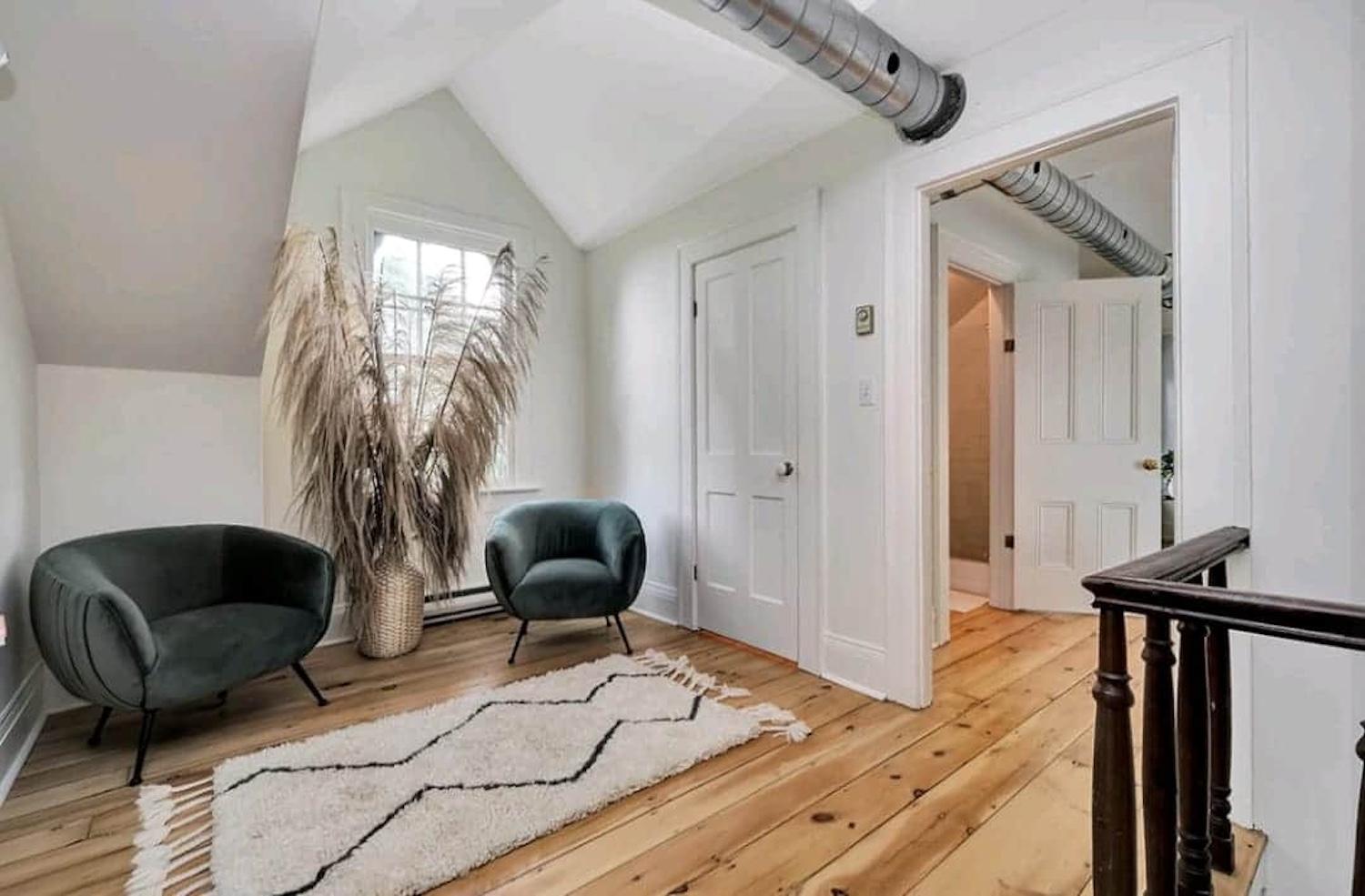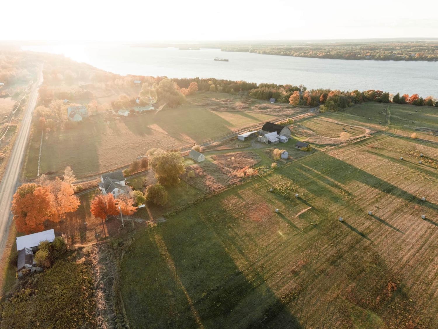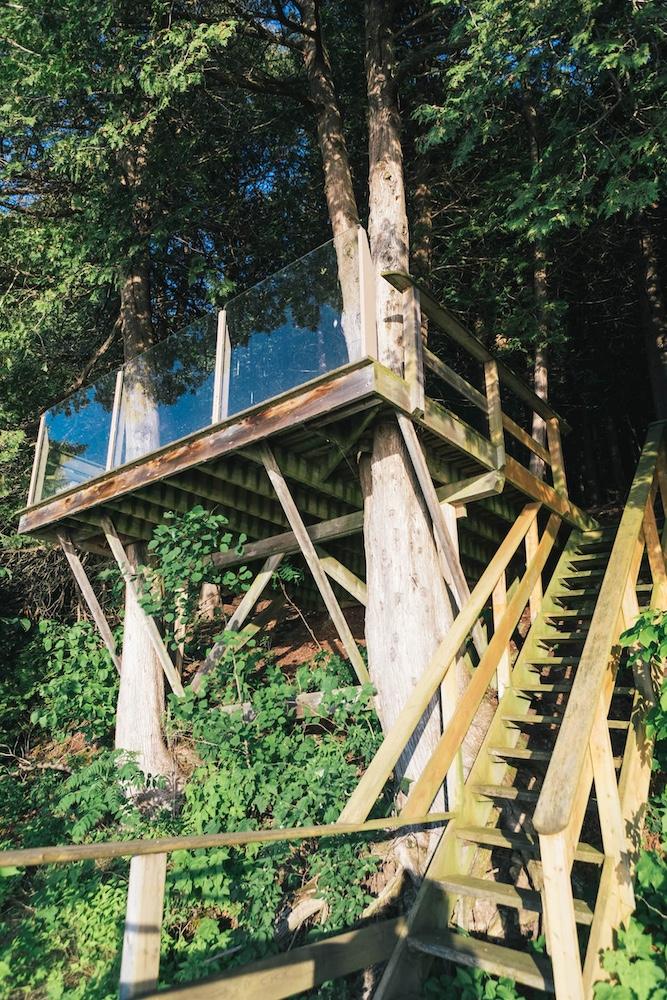 But perhaps the most unforgettable feature is the land itself. The farmhouse sits on over a dozen acres, with original barns, winding forest paths, and a secluded bluff that leads down to Adolphus Reach—a quiet stretch of water where the Bay of Quinte meets Lake Ontario. It’s about 150 steps down through the trees, and worth every bit of the climb back up.