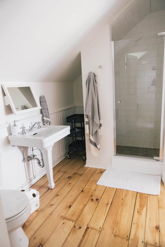 That intention is evident in every room of the house. Originally an authentic country farmhouse, the home has been restored with a keen eye for detail. Think creamy whites, natural wood tones, and original pine floors underfoot. The aesthetic is as calming as the surrounding landscape, designed to help guests immediately slow down.