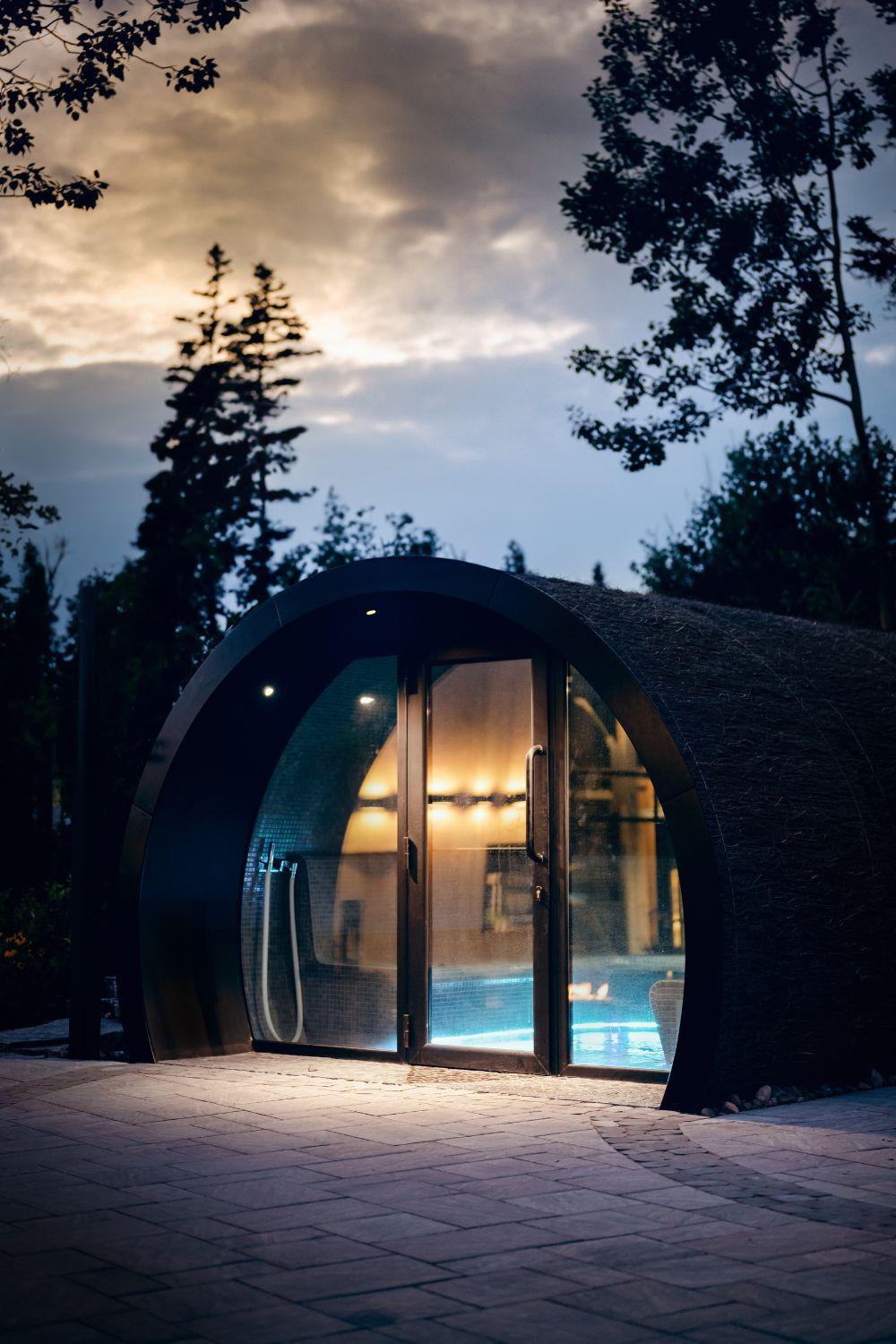 The Finnish saunas are curved, to be set back into the local topography, while the salt inhalation hammam (set with local tiles) has that misty, Atlantic foggy feel. Only one element was international: the two thermal huts came from a Belgium-based group known for its exceptional design, technology and energy efficiency standards. The thermal cabins were customized and designed to be fully accessible.
