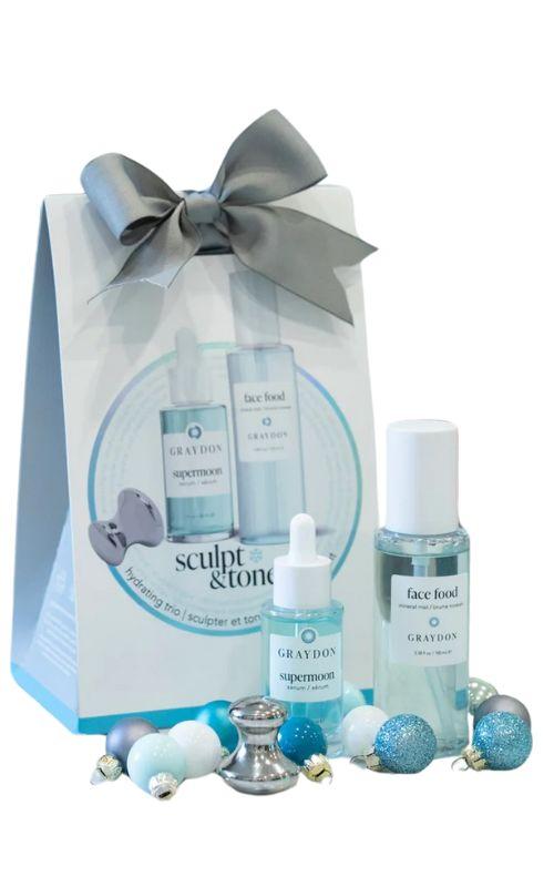 Give the gift of glowing, sculpted skin with Graydon’s limited-edition Sculpt & Tone Hydrating Trio. This luxurious holiday kit includes full-size bottles of their best-selling 6-in-1 Supermoon Serum and the refreshing Face Food Mineral Mist, both designed to hydrate and revitalize. The set also features a premium stainless steel gua sha, perfect for sculpting and smoothing your face while enhancing product absorption.