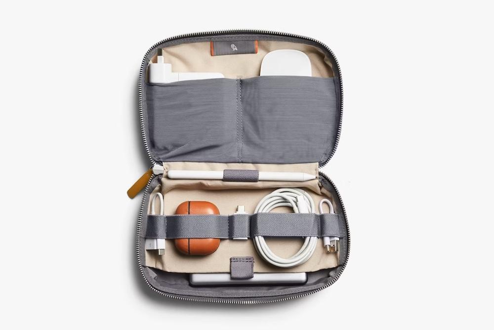Bellroy’s travel collection is for wanderers who know there’s a better way; to glide through the airport and shift from traveller to local in one bag change. We adore their Tech Kits for organizing all of our chargers and accessories without tangles. This generously sized kit keeps everything smooth and sorted: a magnetic slip pocket fits your power bank, stretch mesh takes a mouse, and an elastic strip organizes cables. Now it’s all there, neat and ready to go.