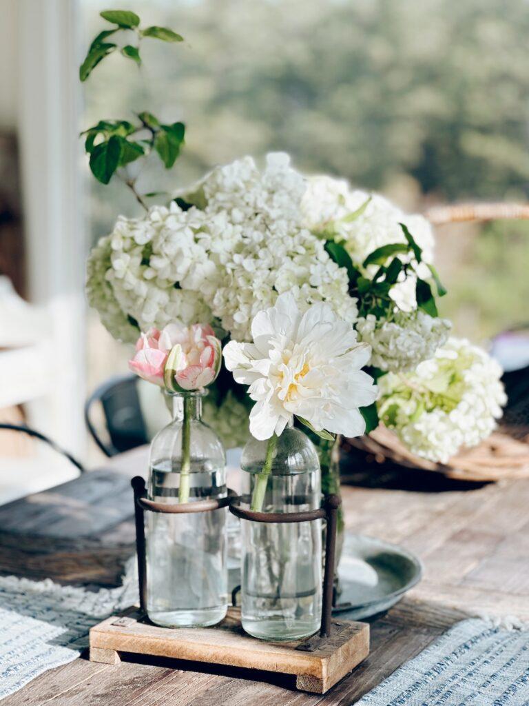 I will admit flowers are the easiest way to bring nature in—but I don’t mean flowers you pick up at the store. What I’m talking about is the experience of finding ways to bring the beauty of the outdoors in. The satisfaction of, for example, gathering flowers from your own backyard, experiencing their beauty as they sway in the breeze, the scent that wafts through the air as you brush against the petals.