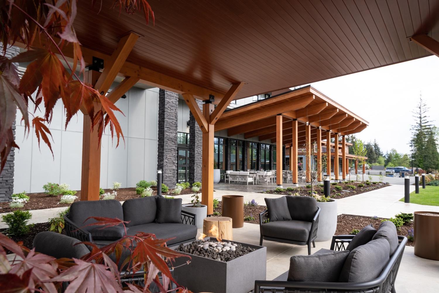 “And now, here we are, standing here,” she smiles. ‘Here,’ meaning Naturally Pacific Resort, a 100-room hotel overlooking the beautifully manicured golf course on one side and Discovery Passage on the other.
