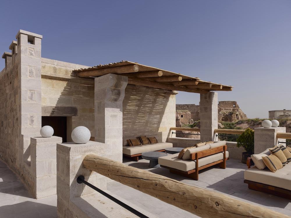 Featuring cave guestrooms, underground tunnels, and a cascading hillside garden, the stunning boutique property overlooks the breathtaking valleys of the ancient region, which boasts dreamlike views of fairy chimneys and hot air balloons every morning at sunrise.