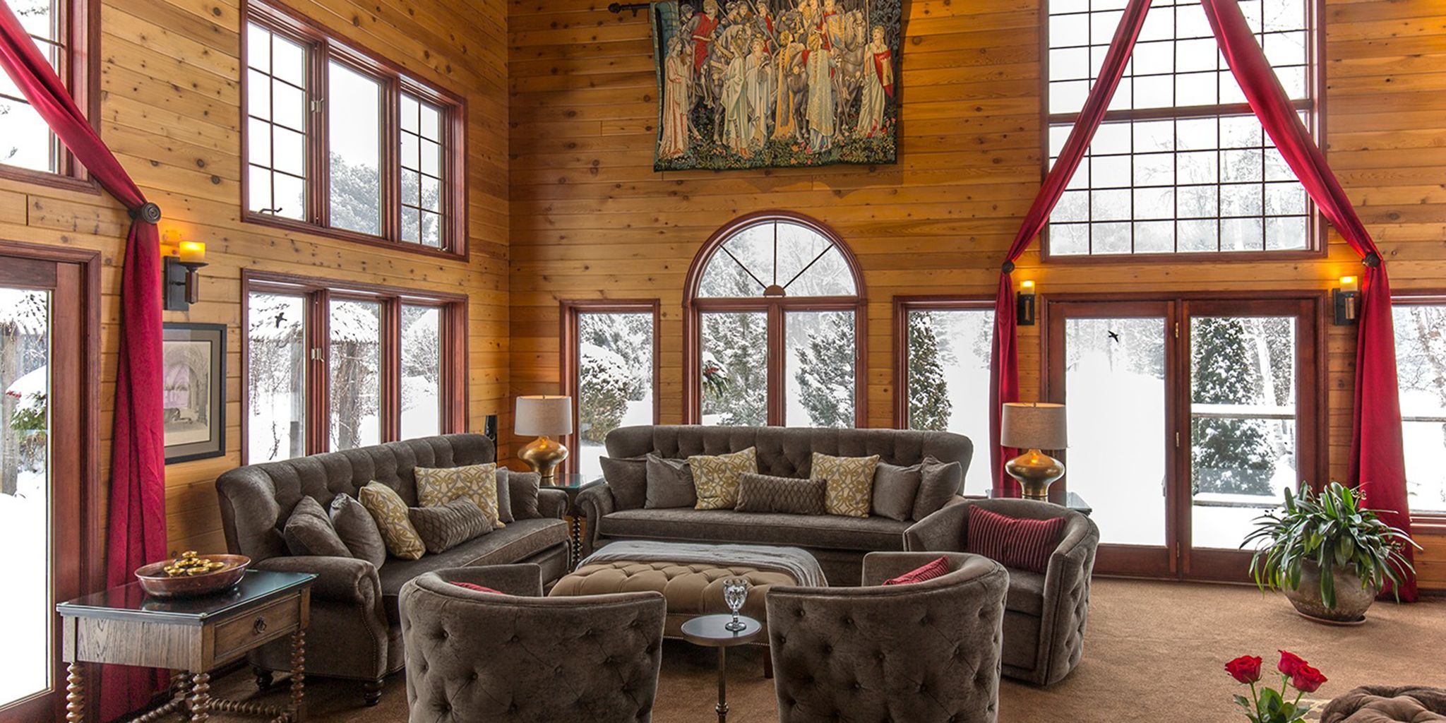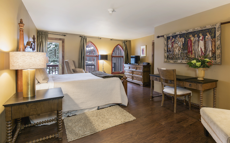 With its plush velvet, dark wood, rich tapestries, swords, stones and candles, I could almost imagine Albus Dumbledore emerging into the Great Room for an evening discussion around the stone hearth.