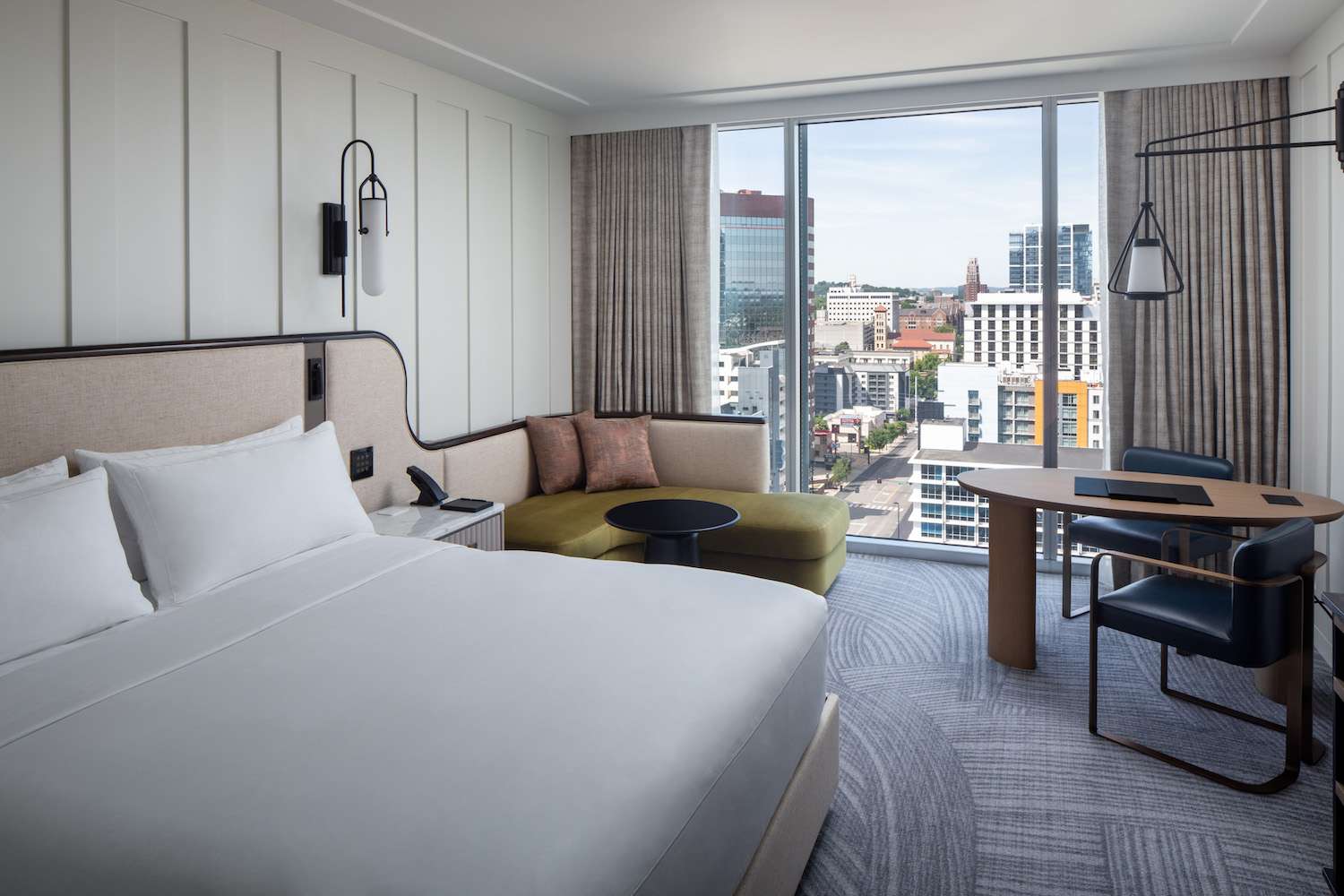 Unlike the average city hotel, you don’t have to slink out of the car swiftly to avoid oncoming traffic. Conrad Nashville is conveniently distanced from the chaos of the city center while remaining a walkable option from all of Nashville’s prized destinations.